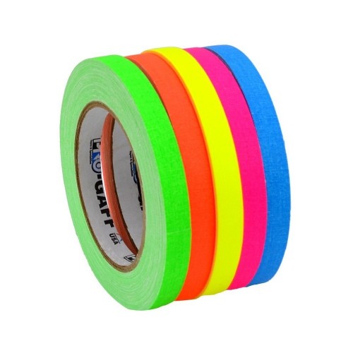 Cinta gaffer fluorescente 24mmx25mts de muy alta visibilidad y duración.